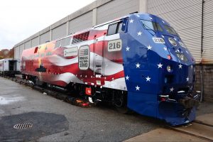 Metro North has unveiled the eighth locomotive in the railroad’s Heritage Series—a moving tribute to our nation’s veterans. Created and designed by Metro-North veterans, this locomotive embodies our gratitude to those who have worn the uniform, both within the Metro-North family and across the country. The Veterans locomotive will be on public display at Grand Central Terminal tomorrow, Veterans Day, and on Wednesday, before entering passenger service at the end of the month.