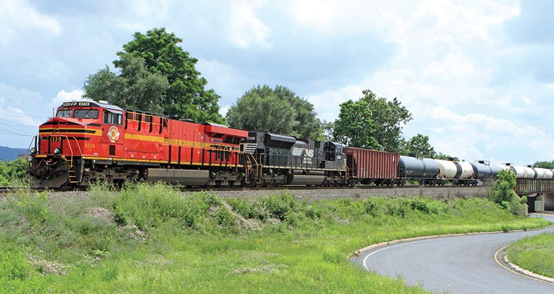ABOVE: The original Norfolk Southern Railway heritage unit 8114 leads a tank train for delivery to Reading & Northern for storage on June 30, 2015. The train is approaching Belt Line Junction (West Belt) as seen from PA Route 61.